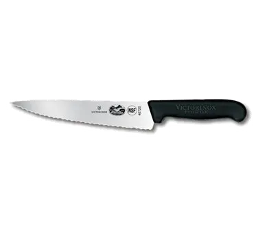 Efficiency for the Modern Kitchen with Victorinox Swiss Army, 5.2033.19-X1, Knife, Chef. This professional-grade chef's knife is a must-have for any commercial restaurant. With its 7-1/2" wavy edge, it effortlessly cuts through meats, vegetables, and fruits, saving you time and effort in food preparation. The Fibrox nylon handle provides a comfortable grip, ensuring precision and control while reducing the risk of accidents. Its slip-resistant design adds an extra layer of safety in a fast-paced kitchen environment. Packaged in a convenient clamshell/peggable package, this knife is ready to use right out of the box. NSF certified, it meets the highest standards of quality and hygiene. Whether you're a seasoned chef or a culinary enthusiast, the Victorinox Swiss Army Chef's Knife is the perfect tool to elevate your cooking skills and deliver exceptional dishes to your customers.