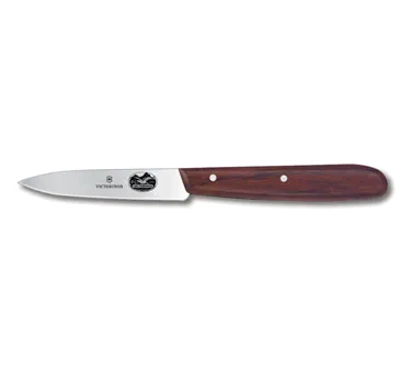 Upgrade Your Culinary Gear with the Victorinox Swiss Army, 5.3000-X1, Knife, Paring. This high-quality knife is a must-have for any commercial restaurant. With its 3-1/4" blade and large rosewood handle, it offers precise control and comfort during food preparation. The high carbon stainless steel blade ensures durability and sharpness, making it perfect for slicing, dicing, and peeling a variety of ingredients. The clamshell/peggable package allows for easy storage and display. Designed by Victorinox Swiss Army, a trusted name in cutlery, this paring knife is built to withstand the demands of a busy kitchen. Whether you're a professional chef or a home cook looking to elevate your culinary skills, this knife is an essential tool. Upgrade your kitchen with the Victorinox Swiss Army, 5.3000-X1, Knife, Paring and experience the difference in your cooking.