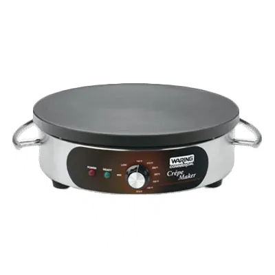 Elevate your culinary experience with the Waring WSC165BX Crepe Maker. This electric crepe maker is perfect for commercial restaurant use, offering a 16" cast iron cook surface that ensures even heat distribution for perfectly cooked crepes every time. The adjustable thermostat allows you to easily control the temperature, reaching up to 570 F, so you can achieve the ideal cooking conditions for your crepes. The heat-resistant carrying handle ensures safe and easy transportation, while the stainless steel base provides durability and stability. This crepe maker comes complete with a batter spreader and spatula, making it convenient and efficient to create delicious crepes. With its high-quality construction and NSF certification, the Waring WSC165BX Crepe Maker is a reliable and valuable addition to any commercial kitchen.
