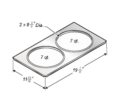 Master the art of cooking with the Wells 20176 Adapter Plate. This versatile accessory is designed to convert a 12" x 20" square corner warmer into a convenient holder for two 7 qt. insets. Whether you're serving up soups, sauces, or sides, this adapter plate allows you to maximize your warming capabilities and keep multiple dishes at the perfect temperature for your customers.