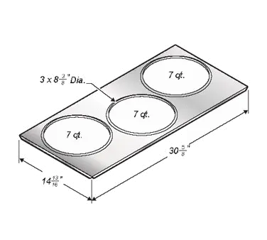 Boost your restaurant's performance with the Wells 22589 Adapter Plate. This high-quality adapter plate, designed by Wells, is a must-have for any commercial restaurant. With its versatile design, it allows you to convert your 12" x 27" SMPT-27 warmer to hold three 7-quart insets. This means you can easily keep multiple dishes warm and ready to serve, maximizing efficiency and ensuring your customers are always satisfied. The Wells 22589 Adapter Plate is packed with features that make it perfect for commercial restaurant use. Its durable construction ensures long-lasting performance, even in the busiest kitchen environments. Plus, its compact size allows for easy installation and storage. Don't miss out on this essential tool for your restaurant. Order the Wells 22589 Adapter Plate today and take your restaurant's performance to the next level.