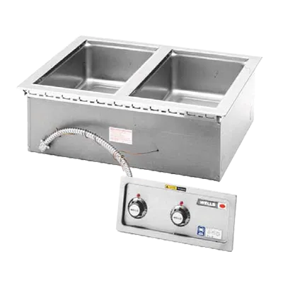 Unleash culinary creativity with the Wells MOD-227TDM Hot Food Well Unit. This top-mount, built-in electric food warmer is designed to meet the demands of a busy commercial restaurant. With two openings that can hold four 1/3 size pans, you'll have plenty of space to keep your dishes warm and ready to serve. The manifold drains with one valve make for easy cleanup, whether you're operating in wet or dry mode. The thermostatic control ensures precise temperature regulation, so your food stays at the perfect serving temperature. The stainless steel interior and aluminum steel housing provide durability and easy maintenance. Upgrade your restaurant's food warming capabilities with the Wells MOD-227TDM Hot Food Well Unit.