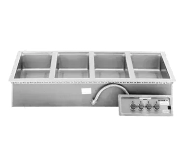 Introducing the Wells MOD-400D Hot Food Well Unit, Drop-In, Electric. Simplify restaurant operations with this top-mount, built-in food warmer. Designed for commercial restaurant use, this unit features four 12" x 20" openings with drains, allowing for wet or dry operation to accommodate a variety of food items. The infinite controls provide precise temperature adjustments, ensuring that your dishes are kept at the perfect serving temperature. The stainless steel interior is not only durable but also easy to clean, while the insulated aluminized steel housing helps to maintain consistent temperatures. With its cULus certification, you can trust in the safety and reliability of this product. Whether you need to keep soups, sauces, or other hot foods warm and ready to serve, the Wells MOD-400D is the ideal solution for your restaurant's needs.