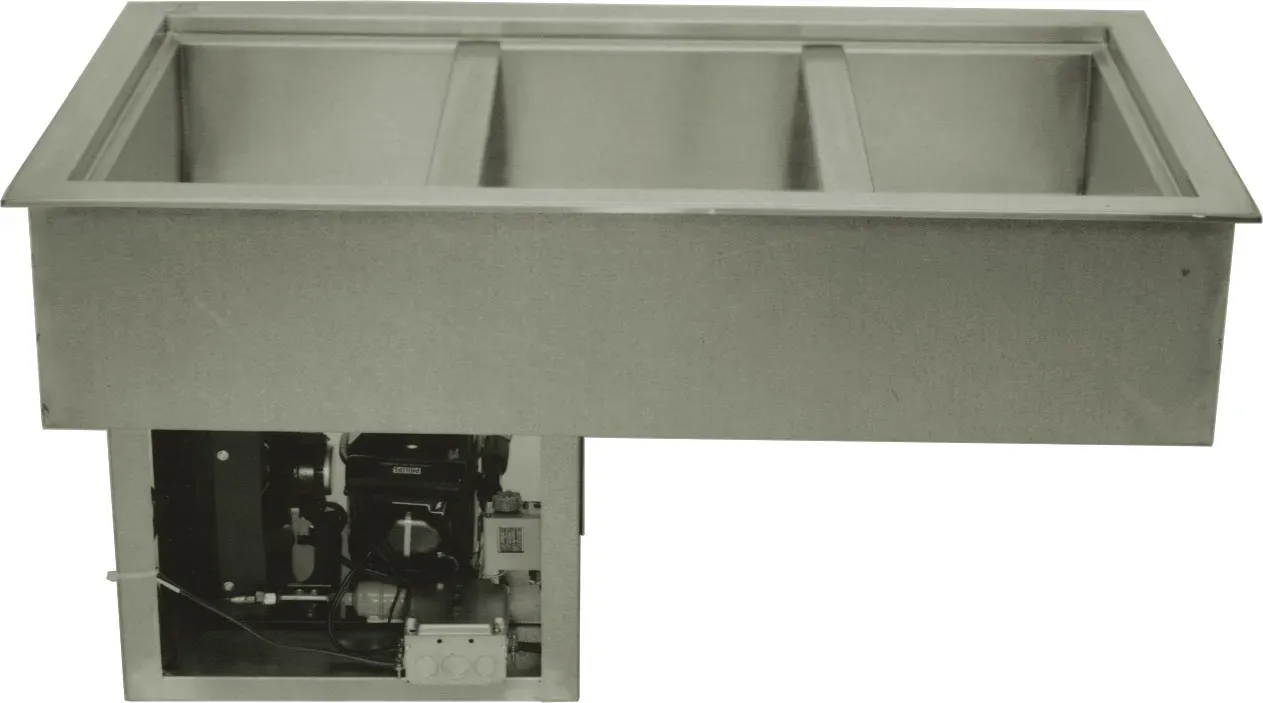 Wells RCP-200 Refrigerated Drop-In Cold Pans hold pre-chilled food products at cold, fresh, and safe serving temperatures. Unit is completely self-contained with individual thermostatic controls, use R-513A CFC free refrigerant system featuring sight glass, and include an 8 ft. cord and plug. One-piece top flange and coved-corner interiors constructed of stainless steel. Exterior body constructed of heavy gauge, corrosion resistant steel. Condensing unit mounted on corrosion resistant frame below the cold pan. Featuring wrapped coil construction on both sides and bottom, on/off switch, easy service valves, dryer/filter and receiver. Condensing unit may be easily removed for service. 1" drain, Two 12" x 20" pans.