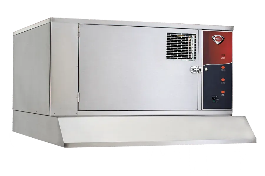 Wells WVC-46 Canopy Universal Ventless Hood with on-board ANSUL fire protection is Certified Type-1 compliant, UL710B approved recirculation hood system and feature completely self-contained 4-stage air filtration system. It does not require venting outside making it possible to cook in nontraditional locations or when traditional Type-1 hoods and ductwork are impractical, restricted, or too expensive. Includes on-board, self-contained fire prevention including the ANSUL tank, and is ready for the ANSUL representative to provide the sopanifier, nitrogen cartridge and the activate and tag the system. Unit is completely self-contained filtration process reduces emissions below that allowed in NFPA 96 and ANSI UL710B using the EPA 202 test method. Airflow is 850 CFM, stainless steel construction, and ceiling mounted adjustable. 208/240V