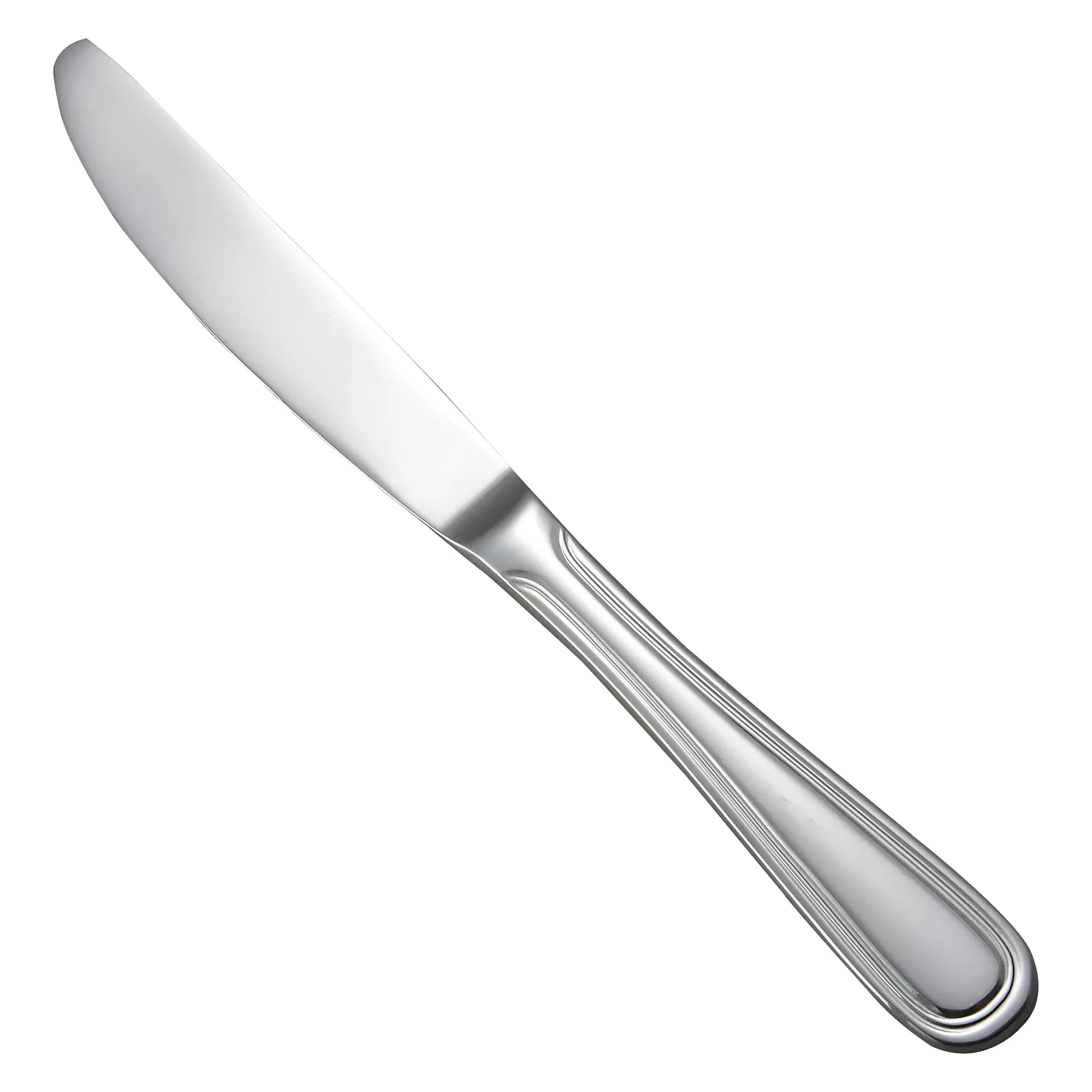 Make every meal a masterpiece with the Winco Shangarila Dinner Knife. Crafted with precision and elegance, this dinner knife is designed to elevate the dining experience in any restaurant setting. Measuring 9 inches in length, the Shangarila Dinner Knife is constructed from 14.188 stainless steel, ensuring durability and a long-lasting shine. The solid handle of the Shangarila Dinner Knife provides a comfortable and secure grip, making it easy for guests to enjoy their meals with ease. Its extra heavy weight adds a touch of sophistication and balance, enhancing the overall dining experience. The mirror finish on this knife not only adds a touch of elegance but also makes it easy to clean and maintain, ensuring it remains a stunning addition to your table setting. The Winco Shangarila Dinner Knife, model 0030-08, is the perfect choice for restaurants that prioritize quality and style. Its robust construction and refined appearance make it suitable for a variety of dining environments, from casual eateries to upscale establishments. Incorporate the Winco Shangarila Dinner Knife into your tableware collection and impress your guests with its superior craftsmanship and timeless design. This knife is more than just a utensil; it is a statement of your commitment to providing an exceptional dining experience.