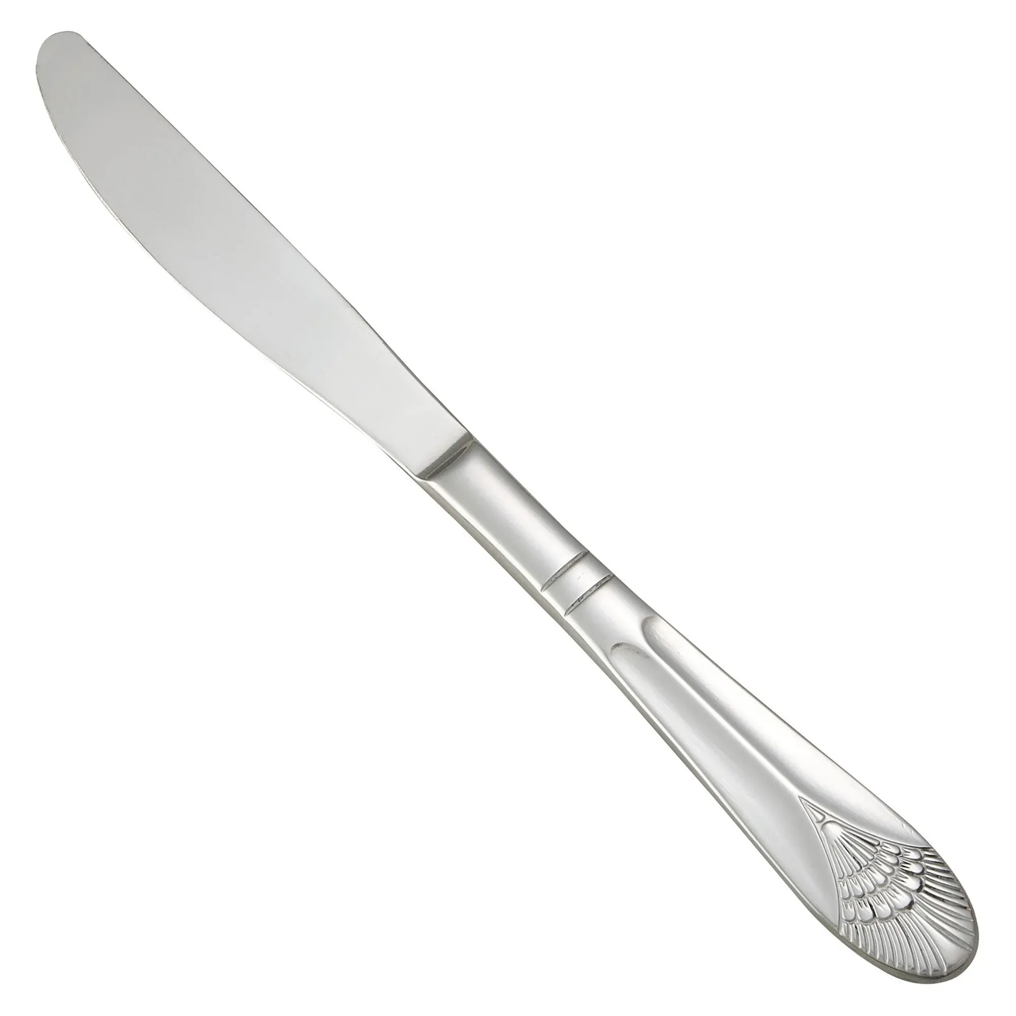Elevate the kitchen’s functionality with the Winco European Table Knife. Crafted from 9-58.188 stainless steel, this knife is designed to meet the highest standards of durability and performance. The extra heavy weight construction ensures a robust feel, making it a reliable choice for any dining setting. The mirror finish of the Winco European Table Knife adds a touch of elegance, reflecting the quality and sophistication of your restaurant. Its sleek design, complemented by the Peacock pattern, makes it not just a utensil but a statement piece on your table. This knife is perfect for enhancing the dining experience, providing both style and substance. Measuring at a precise length, the Winco European Table Knife is ergonomically designed for comfort and ease of use. Its balanced weight distribution ensures a seamless cutting experience, making it ideal for both casual and fine dining establishments. The high-grade stainless steel construction guarantees long-lasting sharpness and resistance to corrosion, ensuring that it remains a staple in your cutlery collection for years to come. Incorporating the Winco European Table Knife into your restaurant’s table setting will undoubtedly impress your guests and elevate their dining experience. Whether you are serving a casual meal or a gourmet feast, this knife is the perfect addition to your cutlery lineup. Choose the Winco European Table Knife for a blend of functionality, durability, and timeless elegance.