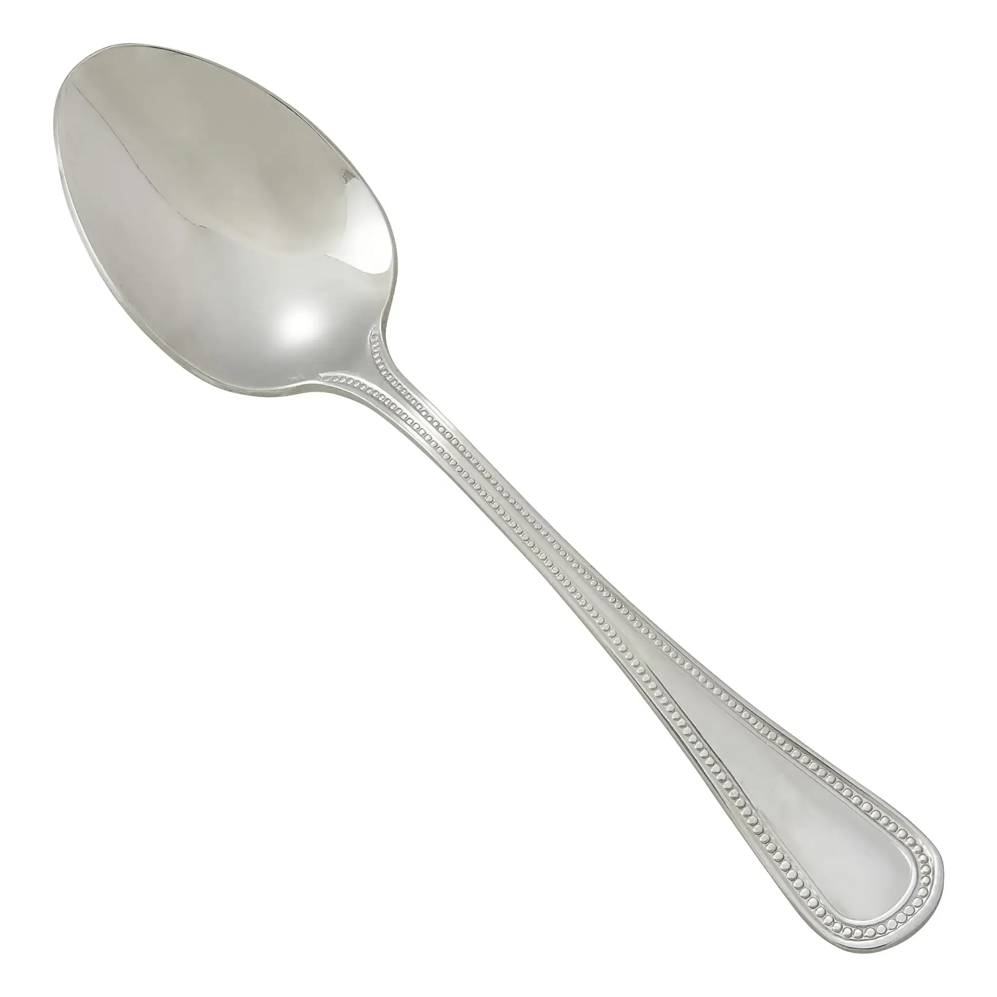 Bring efficiency and style to the kitchen with the Deluxe Pearl Dinner Spoon from Winco. Crafted with precision, this dinner spoon is made from 7-14.188 stainless steel, ensuring durability and longevity in a bustling restaurant environment. The extra heavy weight of the spoon provides a substantial feel, enhancing the dining experience for your guests.