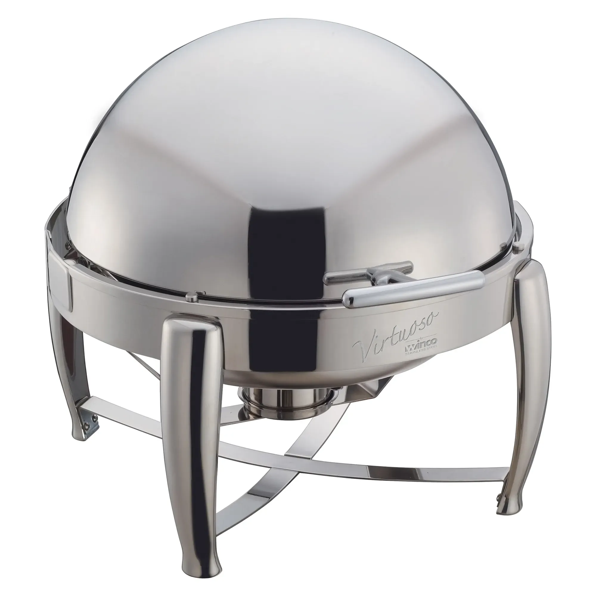Bring precision to cooking with the Virtuoso Chafer by Winco. This 6 qt. round roll top chafer is designed to meet the high standards of any restaurant setting, ensuring both functionality and elegance. Crafted from 188 stainless steel with a mirror finish, the Virtuoso Chafer not only provides a sleek and professional appearance but also guarantees durability and longevity. The extra heavyweight construction of the Virtuoso Chafer ensures it can withstand the rigors of daily use in a busy kitchen. Its stackable design allows for efficient storage, saving valuable space when not in use. The roll top feature offers easy access to the food, making it convenient for both staff and guests during service. Included with the Virtuoso Chafer are a food pan, water pan, and one fuel holder, providing everything you need to keep your dishes at the perfect temperature. The 6 qt. capacity is ideal for serving a variety of dishes, from appetizers to main courses, making it a versatile addition to your buffet or catering setup. The model 103B adds a touch of sophistication to your presentation, ensuring that your food not only tastes great but looks appealing as well. Whether you are hosting a large event or a small gathering, the Virtuoso Chafer by Winco is the perfect choice for maintaining the quality and presentation of your culinary creations. Elevate your dining experience with the Virtuoso Chafer, where precision meets elegance in every detail.
