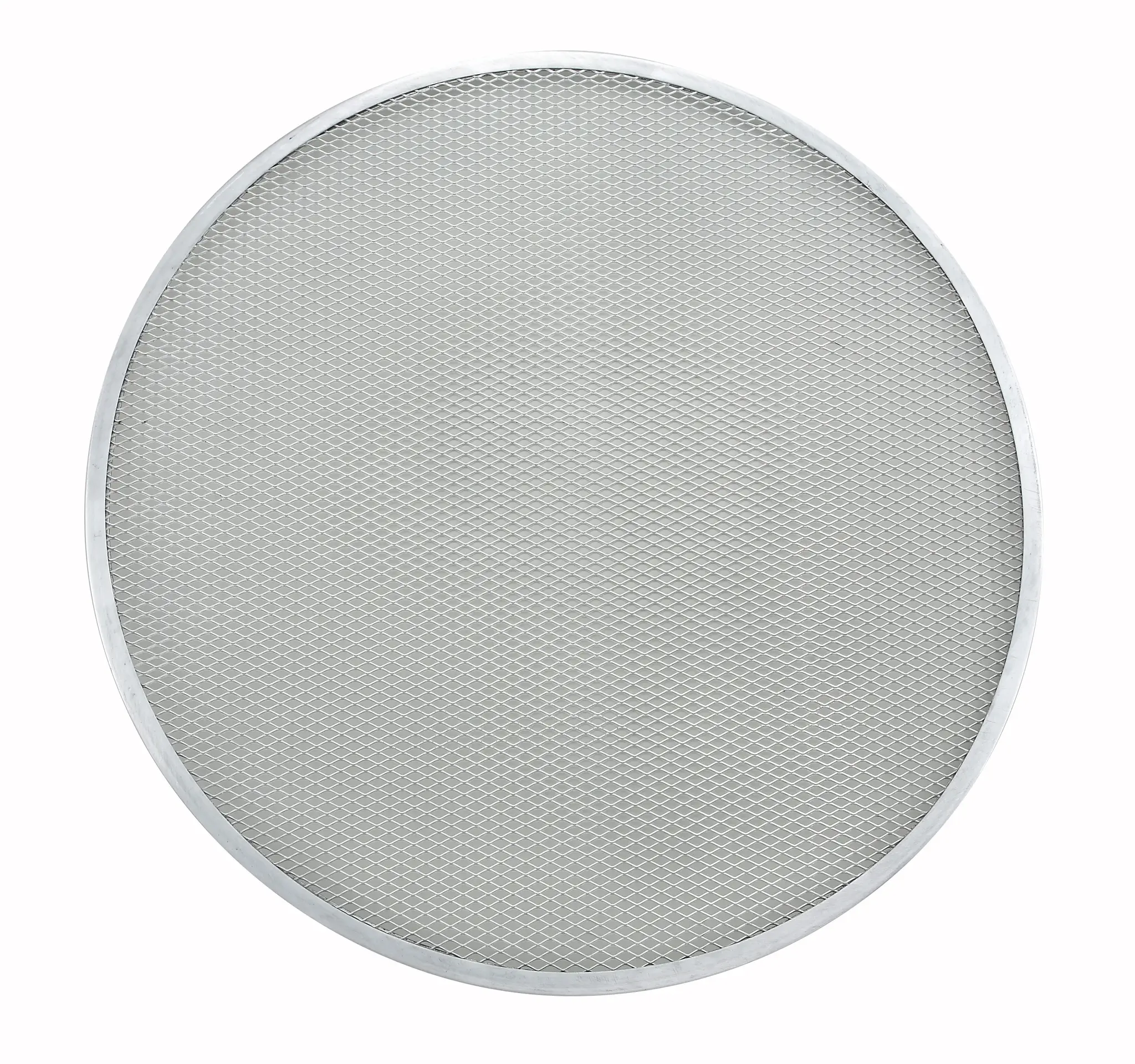 A kitchen essential using the Winco Pizza Screen, this 20-inch diameter round seamless aluminum screen is designed to elevate your restaurant's pizza-making process. Crafted with precision, the Pizza Screen ensures even heat distribution, resulting in perfectly baked pizzas every time. The seamless aluminum construction not only provides durability but also makes it easy to clean, saving valuable time in a busy kitchen environment.