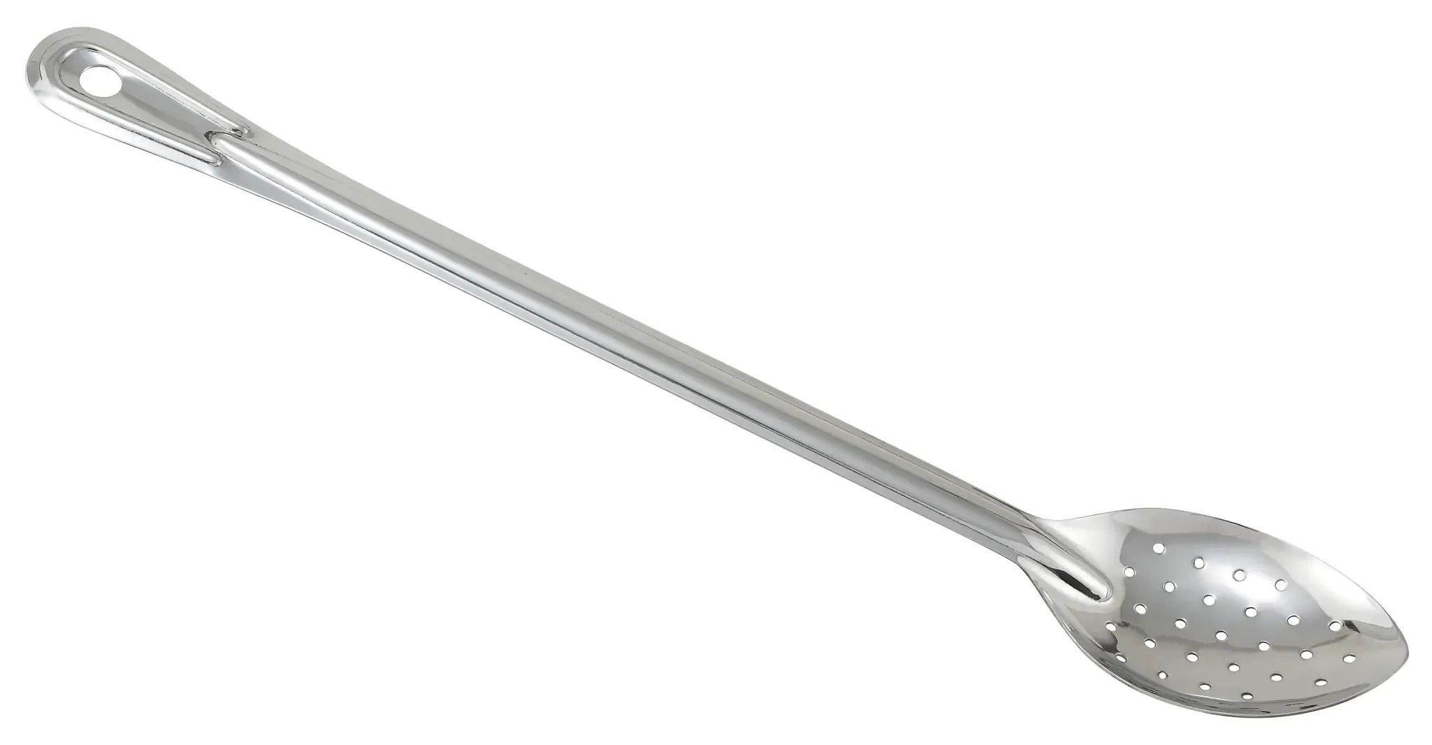 Create with confidence using the Winco Basting Spoon. This 18-inch long, perforated, one-piece stainless steel utensil is designed to meet the rigorous demands of a professional kitchen. The Winco Basting Spoon is crafted from high-quality stainless steel, ensuring durability and resistance to corrosion, making it an essential tool for any restaurant setting.
