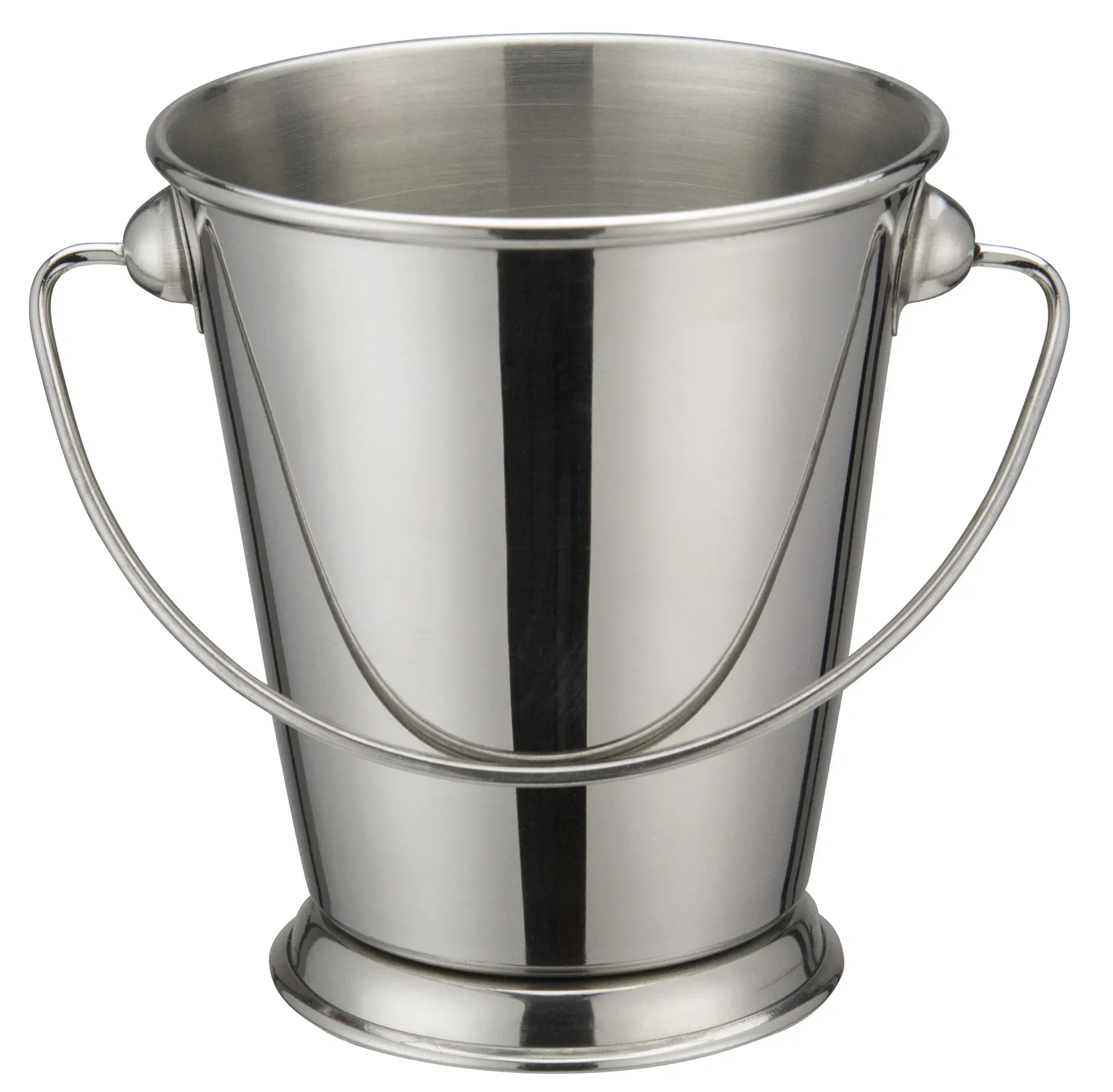 With its compact dimensions of 5 inches in diameter and 5 inches in height, the Winco Mini Pail fits seamlessly on any table setting, adding a touch of elegance and sophistication. The round shape and polished finish not only enhance its aesthetic appeal but also ensure easy cleaning and maintenance, essential for a busy restaurant environment.