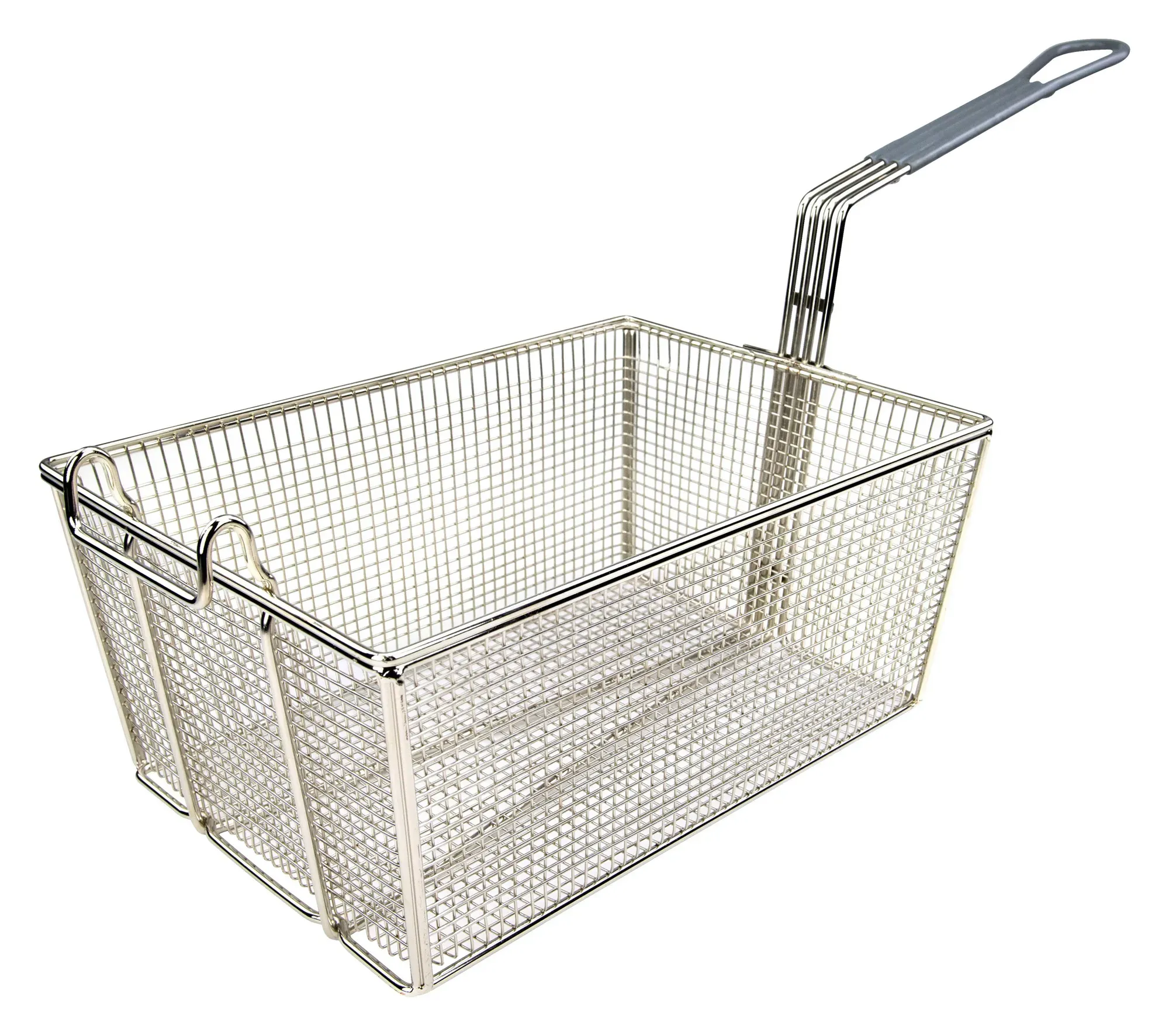 Make a statement in the kitchen with the Winco Fry Basket. Designed to meet the rigorous demands of a bustling restaurant, this fry basket boasts impressive specifications that make it an indispensable tool for any professional kitchen. Measuring 13-3/8 inches in length, 9-1/2 inches in width, and 6-1/8 inches in height, this rectangular basket offers ample space for frying a variety of foods to perfection. Crafted as a one-piece, non-welded unit, the Winco Fry Basket ensures durability and longevity, even with frequent use. The nickel-plated finish not only adds a sleek, professional look but also provides excellent resistance to corrosion, ensuring that the basket maintains its quality over time. The 10-1/2 inch grey plastic handle is ergonomically designed for comfort and safety, allowing chefs to handle the basket with ease, even in the heat of a busy service. The Winco Fry Basket, model FB-35, is a reliable and efficient choice for any restaurant looking to enhance its frying capabilities. Its robust construction and thoughtful design make it a practical addition to your kitchen equipment, ensuring consistent and high-quality results with every use. Elevate your kitchen's performance with the Winco Fry Basket and experience the perfect blend of functionality and durability.