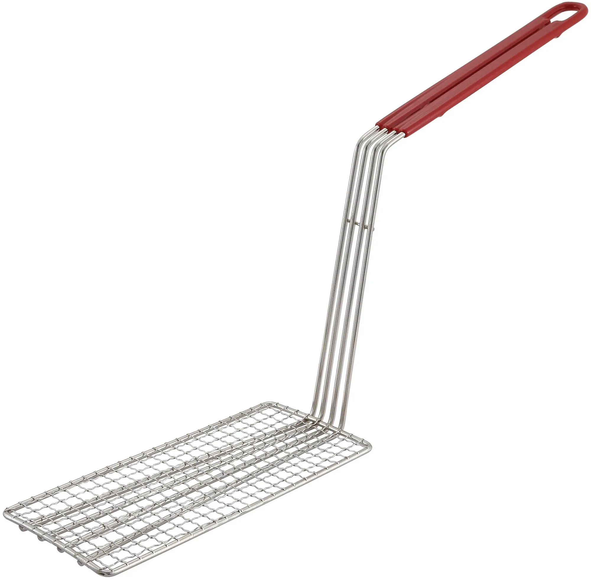 The perfect addition to any kitchen with using the Winco Fry Basket Press. This essential tool is designed to fit perfectly with the FB-30.11 fry basket, making it an indispensable asset for any restaurant aiming to deliver consistently high-quality fried foods. Crafted with a rectangular shape, the Winco Fry Basket Press ensures even cooking by keeping food submerged in the oil, preventing floating and ensuring a uniform fry. The red plastic-coated handle not only adds a pop of color to your kitchen but also provides a comfortable and secure grip, reducing the risk of slips and burns during busy service hours. Constructed with nickel plating, this fry basket press is built to withstand the rigors of a commercial kitchen. The durable material resists corrosion and maintains its integrity even with frequent use, ensuring longevity and reliability. The model FB-PB is specifically designed to complement the FB-30.11 fry basket, making it a perfect match for your existing equipment. Incorporating the Winco Fry Basket Press into your kitchen setup will streamline your frying process, enhance safety, and improve the quality of your fried dishes. Whether you're frying up crispy fries, golden chicken, or delicate tempura, this fry basket press will help you achieve perfect results every time. Upgrade your kitchen with the Winco Fry Basket Press and experience the difference in efficiency and quality. This tool is not just an accessory but a necessity for any restaurant committed to excellence in their fried offerings.