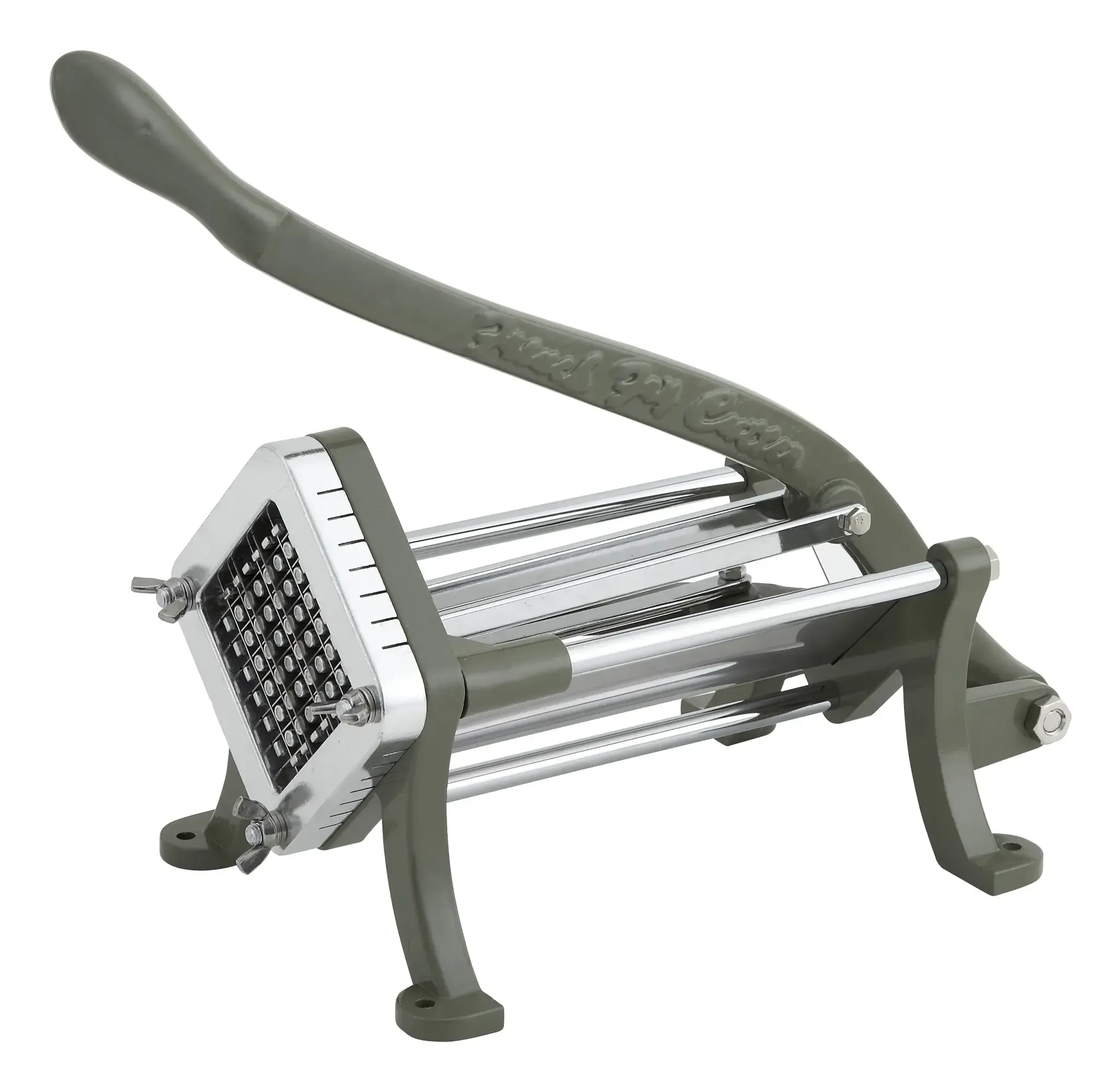 Perfect for any kitchen setup with its robust design and efficiency, the Winco French Fry Cutter is an essential tool for any restaurant aiming to deliver perfectly cut fries every time. This French Fry Cutter, model FFC-500, is engineered to provide 12 square cuts with precision, ensuring uniformity and consistency in every batch. Crafted with an ergonomic handle, the Winco French Fry Cutter minimizes strain and maximizes comfort, allowing your kitchen staff to operate it effortlessly even during peak hours. The stainless steel blade is not only durable but also resistant to rust and corrosion, guaranteeing long-lasting sharpness and hygiene. The cast iron body of the Winco French Fry Cutter adds to its durability, making it a reliable addition to your kitchen equipment. Its sturdy construction ensures stability and safety, reducing the risk of accidents while enhancing productivity. Whether you run a bustling diner or a high-end restaurant, the Winco French Fry Cutter, model FFC-500, is designed to meet your needs with its superior performance and ease of use. Invest in this indispensable kitchen tool and elevate the quality of your fries, ensuring your customers keep coming back for more.