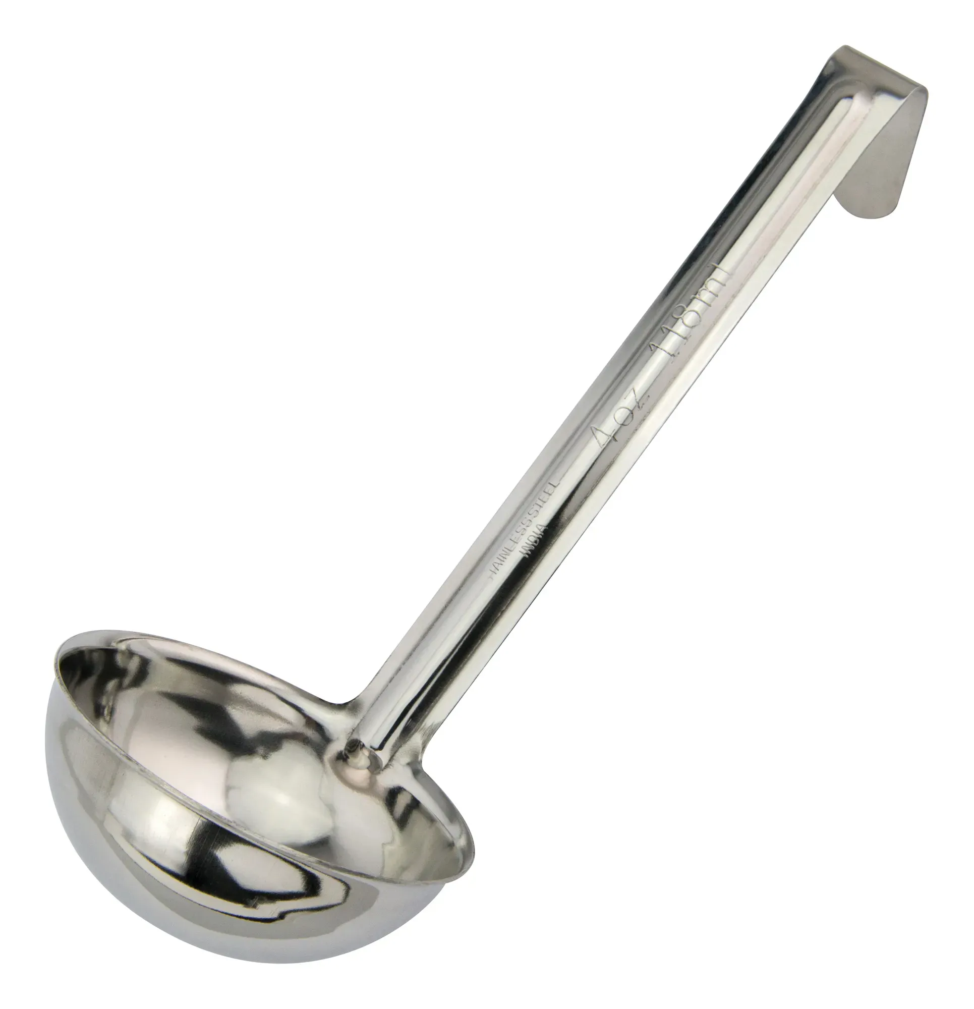 Make every dish extraordinary with the Winco Ladle. This high-quality kitchen tool, model LDI-40SH, is designed to meet the rigorous demands of a bustling restaurant environment. Crafted from one-piece stainless steel, the Winco Ladle boasts a mirror finish that not only enhances its aesthetic appeal but also ensures durability and ease of cleaning. With a 4 oz. capacity, this ladle is perfect for portioning soups, sauces, and dressings with precision, ensuring consistency in every serving. The 6-inch handle provides a comfortable grip, allowing for effortless scooping and pouring, even during the busiest service hours. Its one-piece construction eliminates the risk of food particles getting trapped, promoting better hygiene and simplifying maintenance. The Winco Ladle is an essential tool for any professional kitchen, offering both functionality and style. Its sleek design complements any kitchen decor, while its robust build guarantees long-lasting performance. Whether you're serving a delicate consommé or a hearty stew, this ladle ensures that every dish is presented perfectly. Incorporating the Winco Ladle into your kitchen arsenal will elevate your food presentation and streamline your service. Trust in the quality and reliability of Winco products to enhance your culinary creations and maintain the high standards your restaurant is known for.
