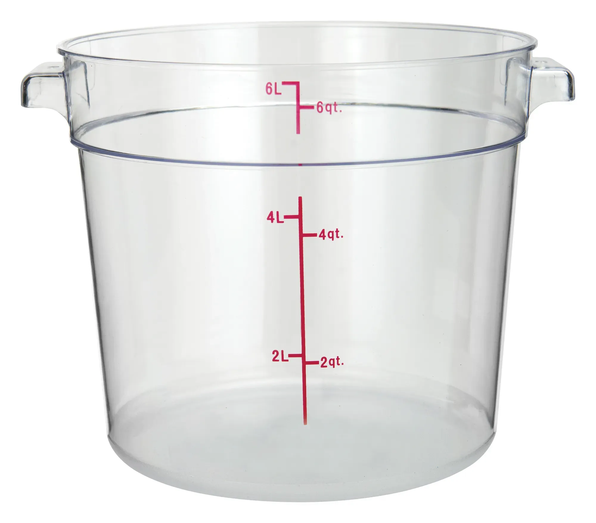 In summary, the Winco 6qt Round Storage Container Clear PC is an indispensable tool for any restaurant. Its clear, durable design, combined with its practical features, makes it an ideal choice for keeping your kitchen well-organized and running smoothly.
