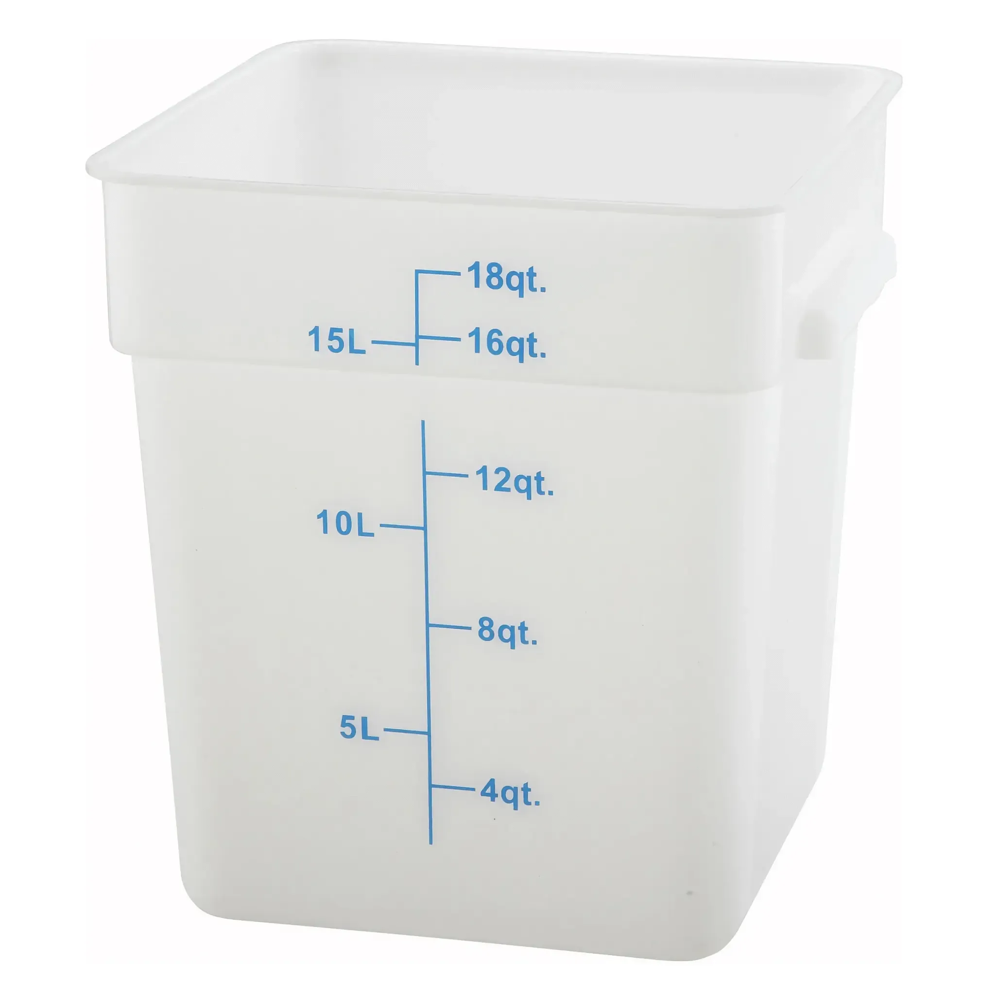 Master the culinary craft with the Winco 18qt Square Storage Container. Designed specifically for the demanding environment of a restaurant kitchen, this storage solution offers both durability and versatility. Crafted from high-quality white polypropylene (PP), the container ensures that your ingredients remain fresh and uncontaminated, making it an essential tool for any professional chef.