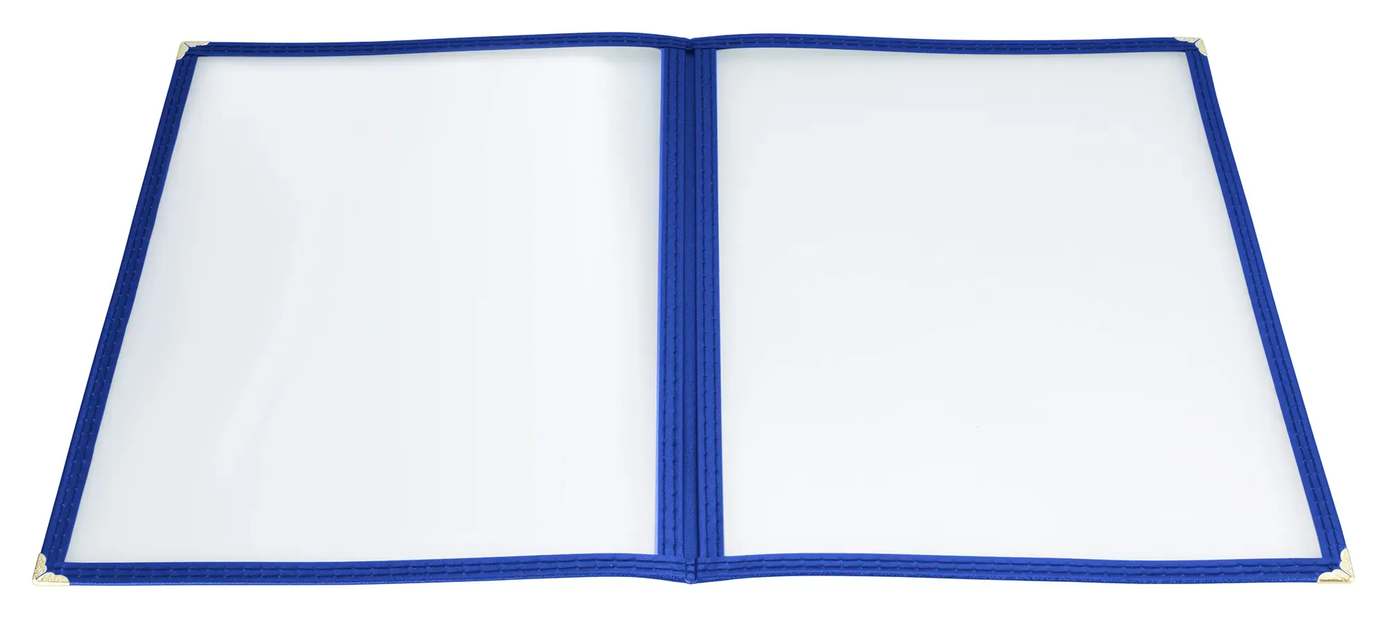 Elevate the kitchen’s functionality with the Winco Menu Cover PMCD-9B. This high-quality menu cover is designed to enhance the dining experience by presenting your menu in a sleek and professional manner. The double-fold design measures an overall 9-3/8 x 12-1/8 inches, perfectly accommodating 8-1/2 x 11-inch paper, making it ideal for standard menu sizes. Crafted with a durable plastic material, the Winco Menu Cover PMCD-9B ensures longevity and ease of cleaning, essential for the high-traffic environment of a restaurant. The blue double-stitched edging not only adds a touch of elegance but also reinforces the cover, preventing wear and tear over time. This thoughtful design detail ensures that your menus remain pristine and presentable, meal after meal. The Winco Menu Cover PMCD-9B is not just about aesthetics; it’s about functionality too. The clear plastic allows for easy visibility of your menu items, making it simple for guests to browse through your offerings. Additionally, the double-fold feature provides ample space for a comprehensive menu, including appetizers, entrees, desserts, and beverages, all in one convenient cover. Incorporating the Winco Menu Cover PMCD-9B into your restaurant setting is a smart choice for any establishment looking to combine style with practicality. Its robust construction and elegant design make it a valuable addition to your dining experience, ensuring that your menus are always presented in the best possible light.