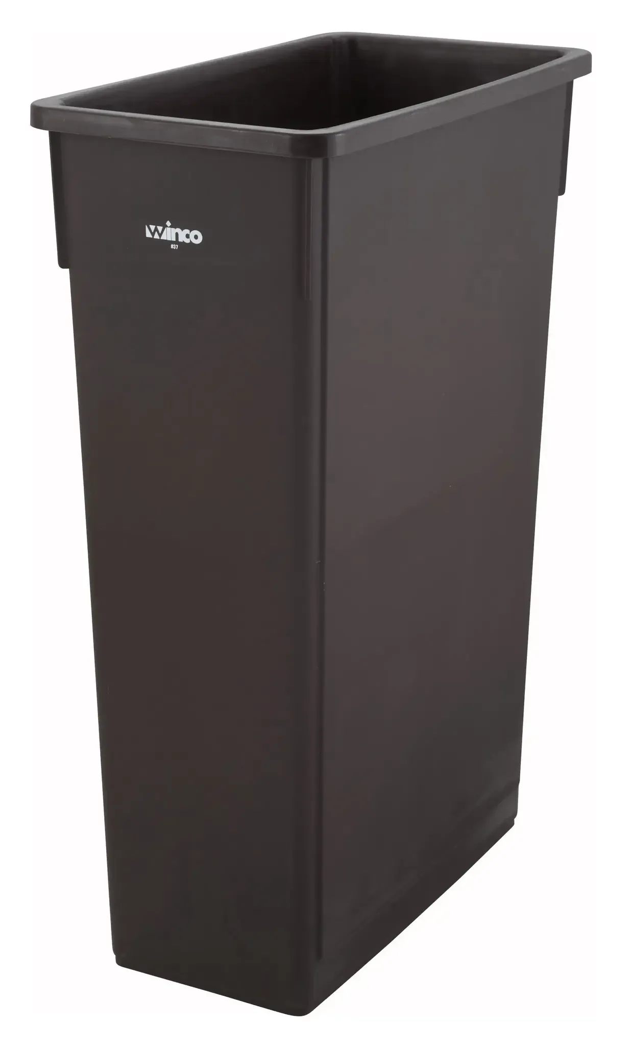 Add a touch of professionalism to the kitchen with the Winco Slender Trash Can. Designed specifically for the demanding environment of a restaurant, this 23-gallon trash can is crafted from high-density polyethylene (HDPE), ensuring durability and longevity. The sleek, slender design of the Winco Slender Trash Can makes it an ideal fit for tight spaces, allowing for efficient waste management without compromising valuable kitchen real estate.