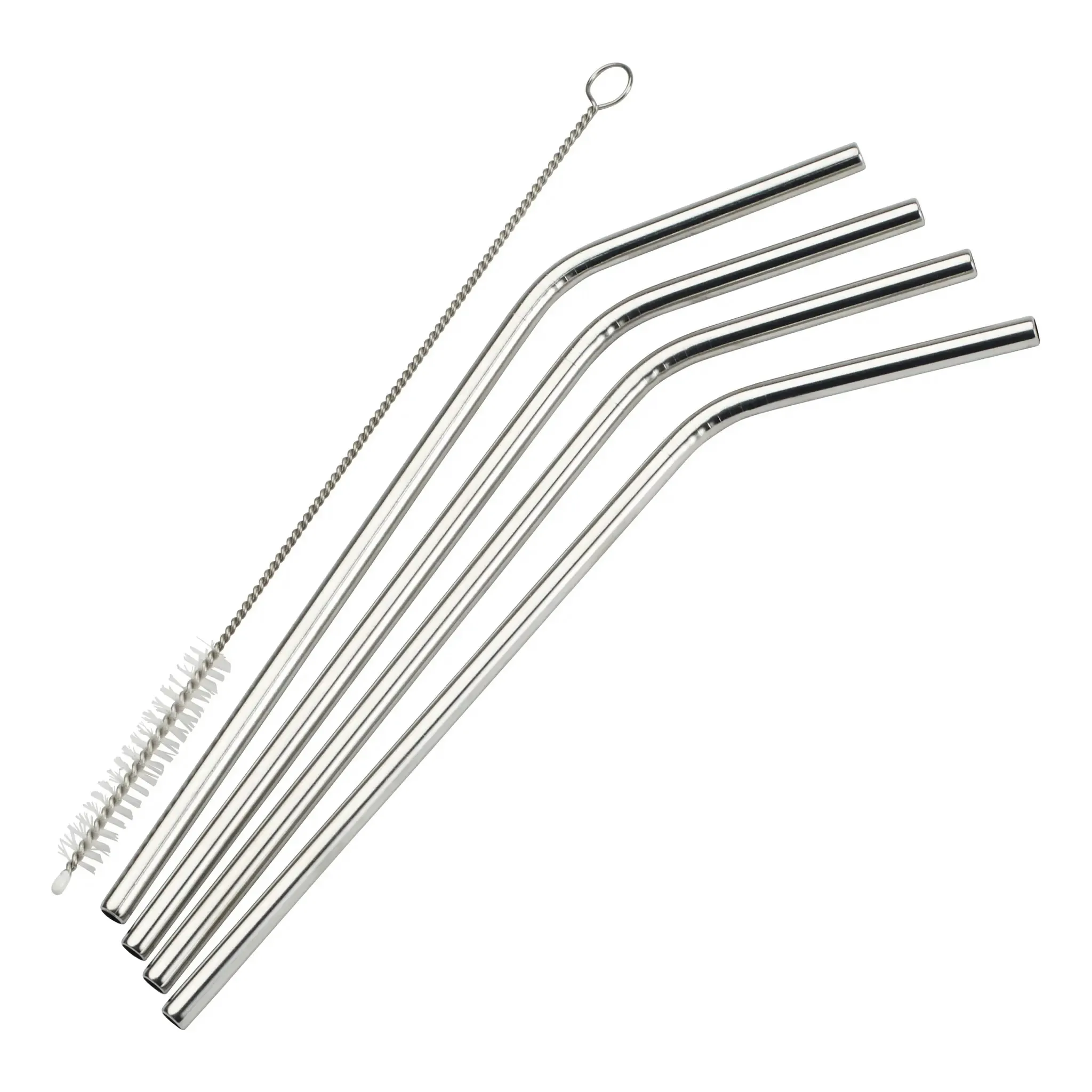Reusable, environmentally-friendly Each straw measures 1/4"Dia x 8-1/2"H 5-piece set includes four (4) straws and one (1) cleaning brush Dishwasher safe Items that come into contact with food should be washed before first use