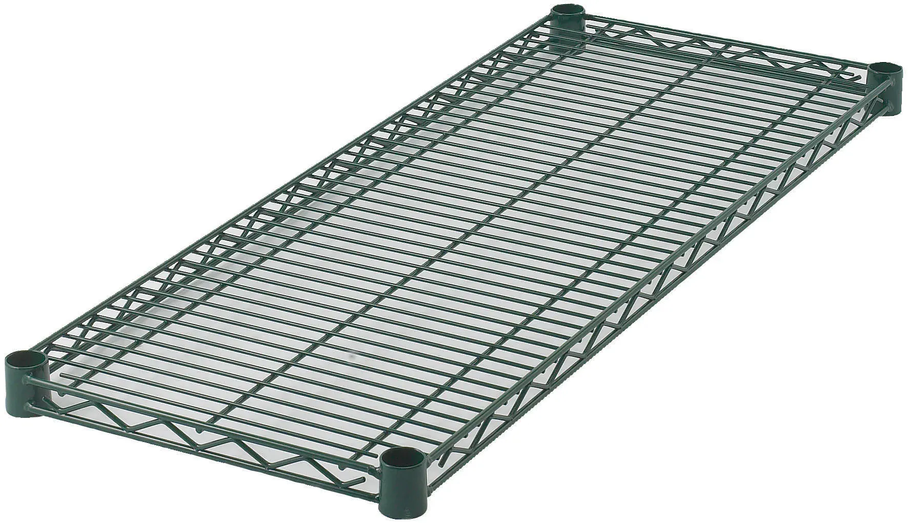 The epoxy-coated green finish not only adds a touch of color to your storage area but also offers excellent resistance to corrosion and rust, ensuring long-lasting use even in humid kitchen conditions. This makes the Winco VEX-1824 Shelf a reliable choice for maintaining a clean and organized workspace.