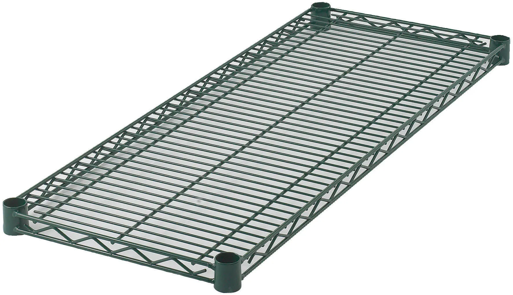 The Winco VEX-1830 Shelf is constructed with a durable wire frame that is epoxy coated in a sleek green finish. This not only enhances its aesthetic appeal but also ensures long-lasting durability and resistance to corrosion, making it ideal for the demanding environment of a busy restaurant kitchen. Each shelf comes with four sleeve clips, allowing for easy and secure installation, so you can trust that your items will be safely stored.
