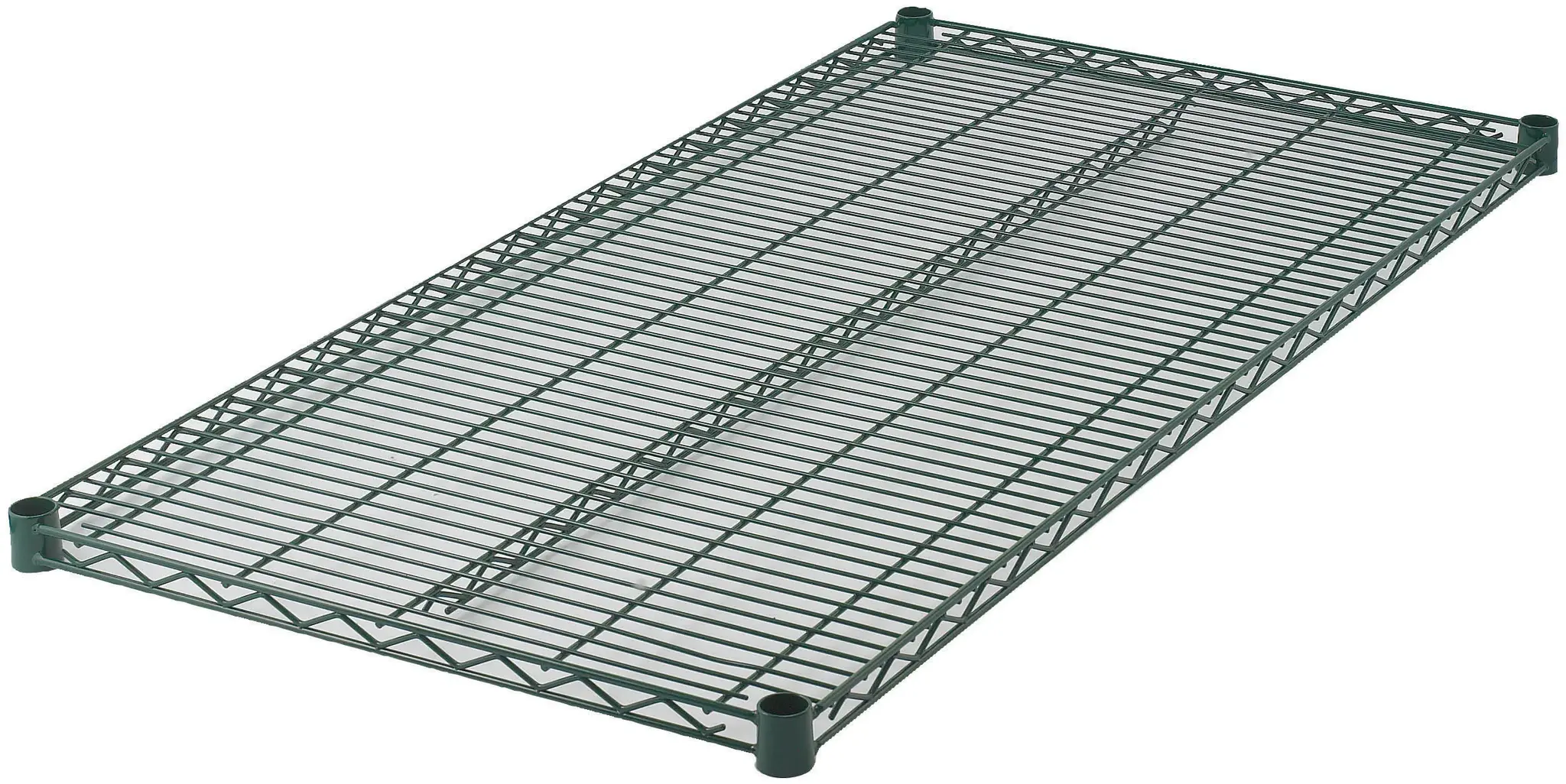 The wire construction of the Winco VEX-2454 Shelf is epoxy coated in green, offering both durability and a sleek, professional appearance. This coating not only enhances the shelf's resistance to corrosion and wear but also makes it easy to clean, maintaining a hygienic environment that is crucial in food service operations. The NSF certification further guarantees that this shelf meets the highest standards for public health protection, making it a reliable choice for your restaurant.