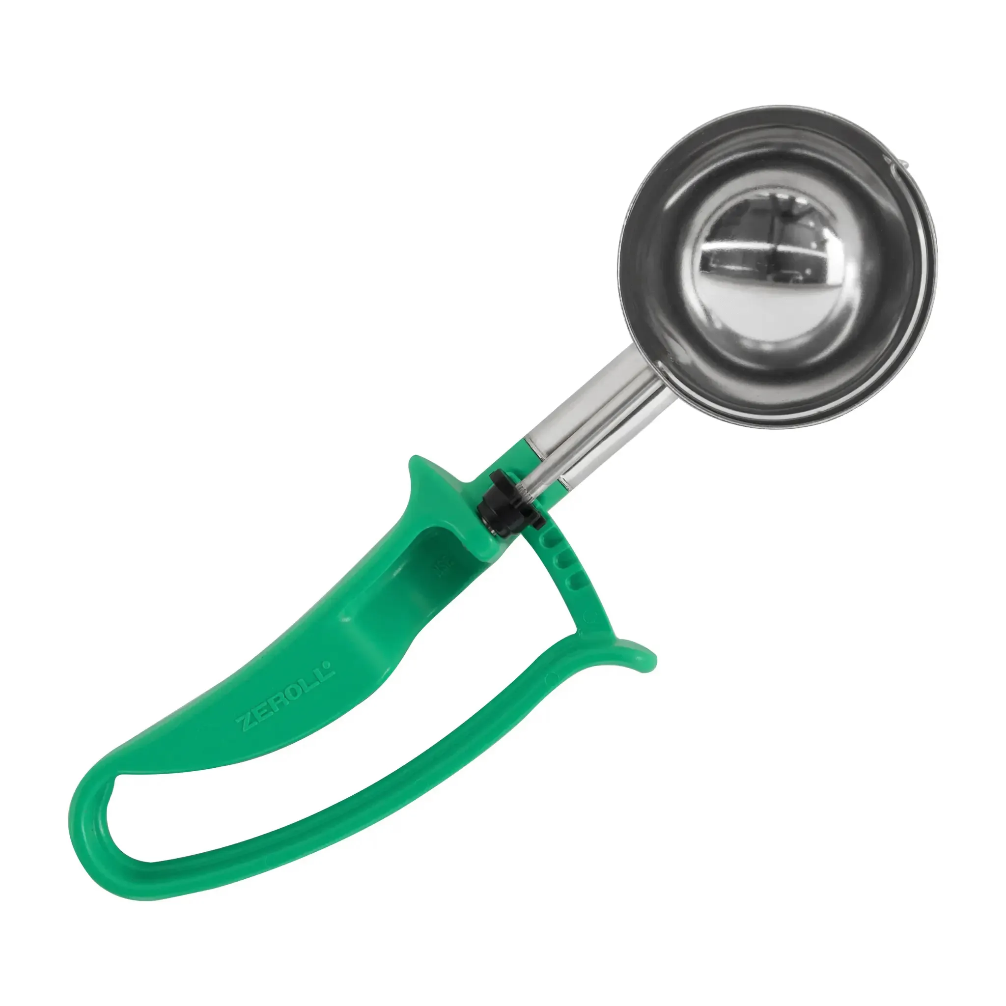 Improve the food serving process with the Zeroll, 2012, Disher, Standard Round Bowl. This versatile tool is a must-have for any commercial restaurant. With its ergonomic design and green color-coded handle, it ensures comfortable and efficient use. The Zeroll Universal EZ Disher is suitable for both right and left-handed users, making it accessible to all staff members. Its stainless steel bowl and scraper blade guarantee durability and easy cleaning, while the absence of springs eliminates the risk of breakage or malfunction. NSF approved for commercial use, this disher meets the highest standards of safety and hygiene. Whether you're serving ice cream, mashed potatoes, or cookie dough, the Zeroll, 2012, Disher, Standard Round Bowl is the perfect tool to streamline your food preparation process.